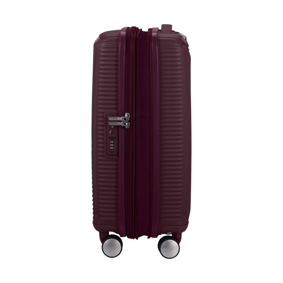 The American Tourister Curio Spinner Carry-On suitcase is a Red Dot Award winner, making it an exceptional choice for travelers. It incorporates features such as expansion, a fixed TSA lock, and convenient inside organization, elevating its status as a top-rated suitcase. The integrated TSA-approved lock ensures added security for your checked luggage, providing peace of mind throughout your journey. With extra expansion on the case, you can easily pack all your belongings without compromising on space. The dual Spinner wheels enable effortless navigation through narrow airplane aisles and across various surfaces. Crafted from 100% polypropylene, this suitcase offers extreme durability, and its textured surface minimizes the visibility of scratches. Please note that carry-on standards may vary by airline, so it's important to check with your airline before flying.